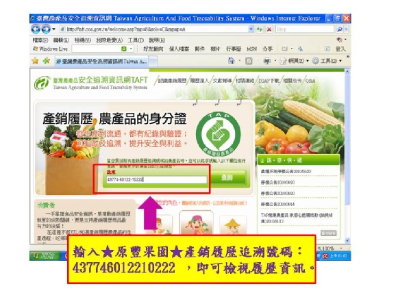 | 民國97年5月中旬起 | 1. 在農業單位的齊心輔導下,於每個採收季開始前,皆會先接受環球國際驗證機構來果園採取樣本進行驗證果實農藥殘留狀況,驗證評估通過予以登陸,並發給本果園農產品產銷履歷認證驗證證書,其驗證項目、產品標準、農產品種類及生產單位資料等登錄資料,可在農委會 http://www.coa.gov.tw/ 及本機構 http://www.ucscert.com.tw/ 查證。 2. 於Yahoo奇摩建立部落格(名稱:~ㄚ陀~原豐果園),記錄各時期的果園大事,位址:http://tw.myblog.yahoo.com/jw!0jwThzmfAii3mAjcouR3UzXJZZU-,歡迎參觀。 |