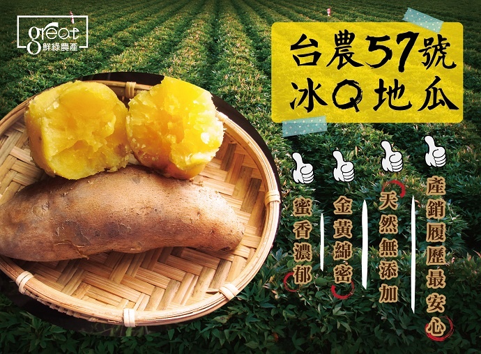 【 台農57號。冰Q地瓜】 1000g甜蜜分享包 ~破盤分享下殺4.3折只要149元~徵10包倍數每包只要139元!!!  | 玉米專家~鮮綠農產