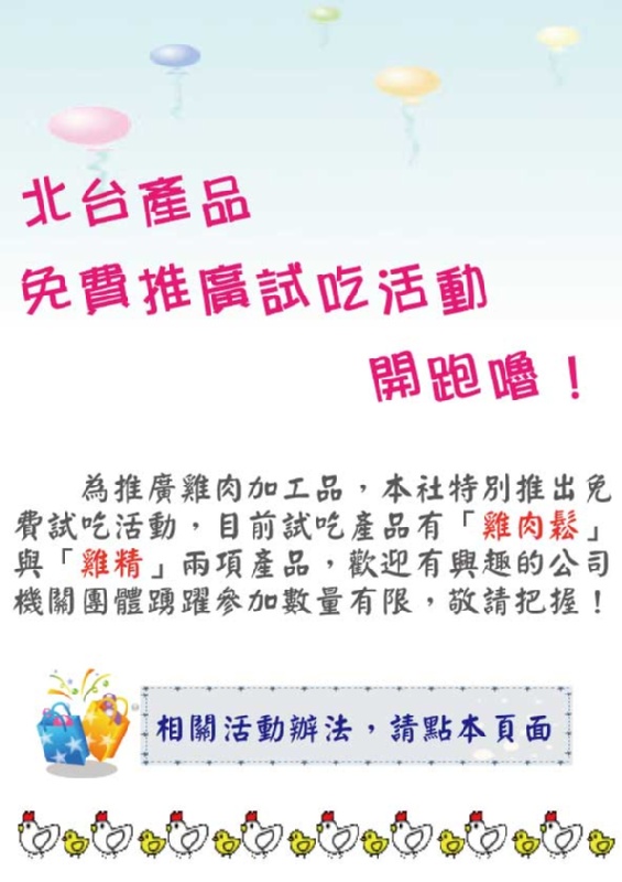 合購介紹 北台產品免費推廣試吃活動開跑嚕! | 北台肉雞運銷合作社