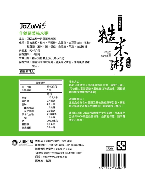 JaZuMi 什錦蔬菜糙米粥 (每份只有120.3大卡哦~)