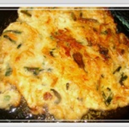 就完成了肉絲蔬菜煎餅囉,相當豐富的口感唷!!