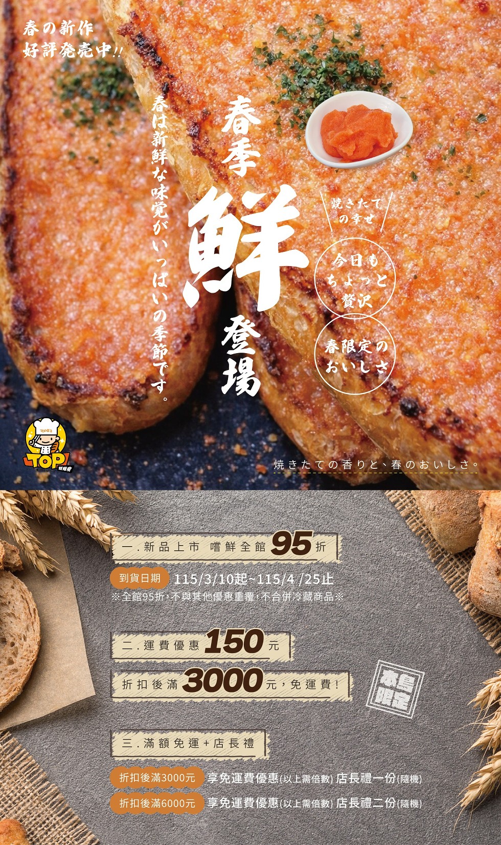滿6000元享免運費優惠(以上需倍數) 店長禮二份(隨機)