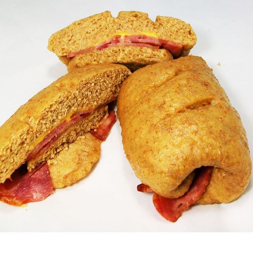 全麥麵粉製作內包美國煙燻起士,麵皮吃起來香Q 有勁~,配上軟軟的起士及可口的整條培根~香味十足~若再搭配一杯香醇的咖啡,簡直是絕配~