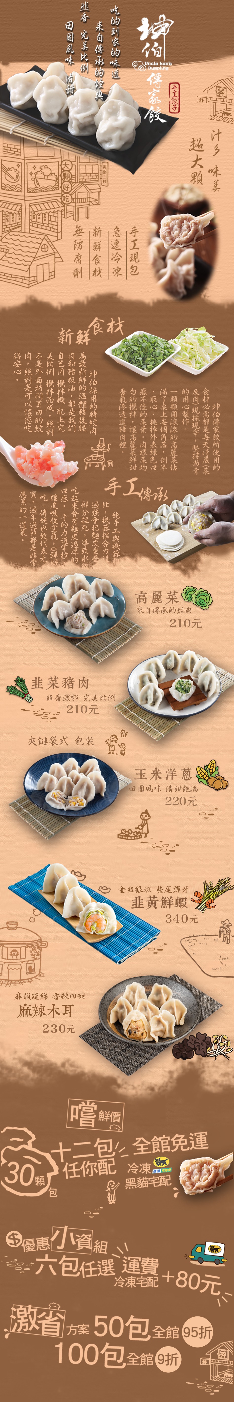 2012年 我們在網路上成立〝坤伯傳家餃〞品牌,希望透過這樣的品牌延續傳家的味道