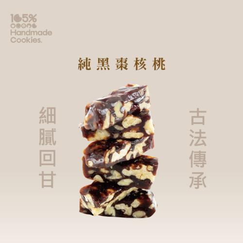 有別市售傳統南棗核桃糕,為節省成本添加過多澱粉與豆沙,且堅果比例不高!此款黑棗核桃糖特別選用台灣黑棗且不添加澱粉與豆沙,使用100%純奶油、純麥芽、堅果比例最大化,以最單純的材料製作最美味的點心。