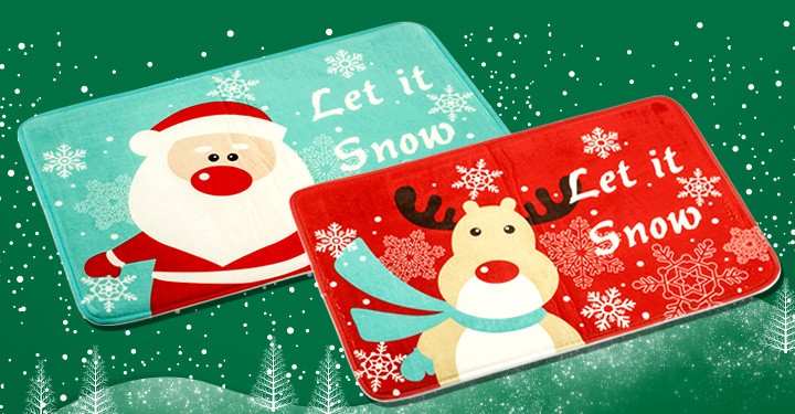 聖誕瑚絨地墊組 聖誕老公公+可愛麋鹿