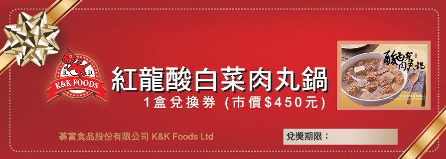 2.成功完成訂購且無退貨者,即可抽商品兌換券-【紅龍】酸白菜肉丸鍋1張,共贈送2張。
