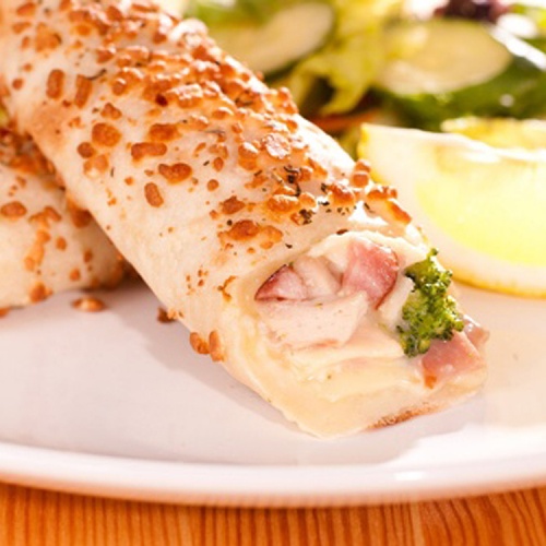 產品特色:雞胸肉的口感柔嫩,搭配獨門白醬和新鮮青花菜調味,帶出雞肉的香甜,雞肉、起司、火腿,微微的煙燻,淡淡的鹹香,讓雞肉捲的口感更清爽、紮實。