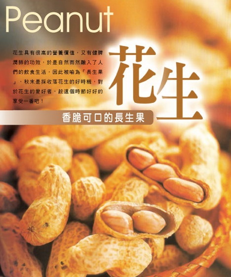 花生營養成分組成 (每100公克含有): (資料來源 五榖營養食用法/漢湘文化)
