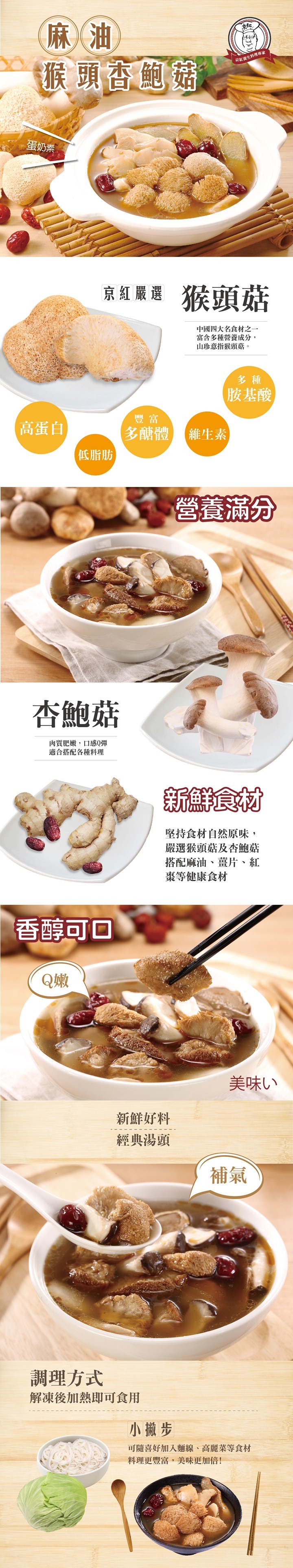 【京紅麻油猴頭杏鮑菇】
