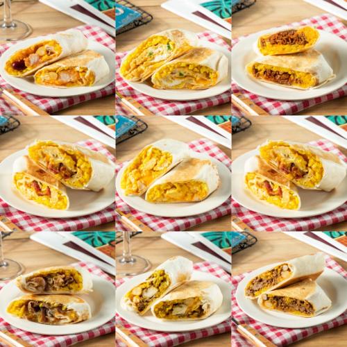 墨西哥煎蛋早餐捲:麵粉、水、雞蛋、洋蔥、切達乾酪、瓦哈卡乾酪、克索布蘭可乾酪、蒙特利傑克乾酪、鷹嘴豆、花豆、黑豆。
