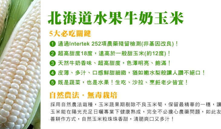 (6/22取貨) 這家水果玉米的品質超讚的,甜度達18度喔~滿30份打85折、60份打75折 | [大合購] 北海道水果牛奶玉米 ☼ 超激甜18度!讓人讚不絕口