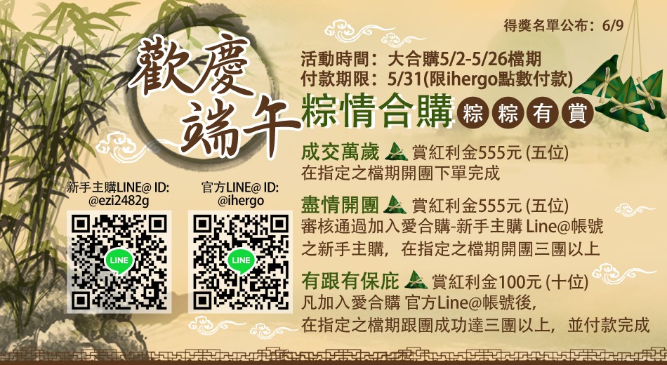 * 106年6月9日為最後到貨日,無法展延 請見諒。主購確認到貨日可配合再進行下單。