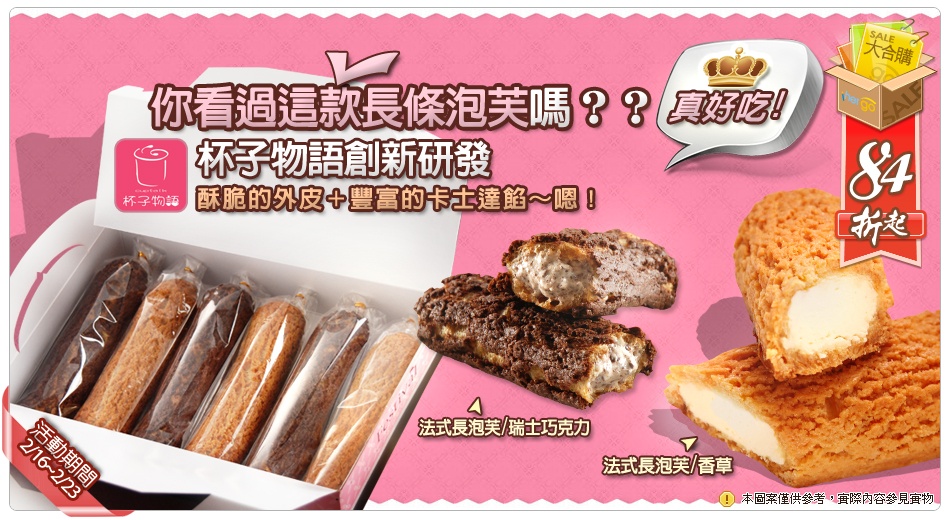 杯子物語*人氣票選評比,酥脆/勝!濃郁/勝!採用高級香草籽製成的香草卡仕達餡,入口時濃郁的香草奶油味,冷凍過後更有著酷似冰淇淋的口感,不甜不膩,絕對能滿足您的味蕾!每一合購或立即訂購總訂購份數需滿17份(不需為倍數),就能享有大合購特惠及免運費;如訂購總份數未滿17份,需自行負擔運費210元。*單筆訂購總份數滿17份,贈送主購禮 大合購商品【法式長泡芙】(可倍數累積)【網友分享】*內餡吃起來很像香草口味的冰淇淋! http://goo.gl/Q182m*冷凍過後的外皮,沒有過硬的口感! http://goo.gl/mJNiV*冷藏時的口感綿密輕盈,跟冷凍過後的一樣好吃! http://goo.gl/EIUe3(為方便店長備貨,到貨前3天務必完成匯款喔)