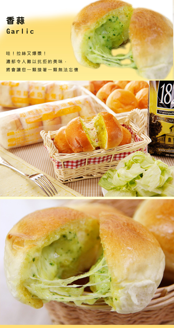 內餡使用紐西蘭進口奶油外,再添加新鮮大蒜泥與天然新鮮巴西利香料,