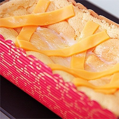 外層淋上烘烤過後的起司片,與蛋糕熔合的那種蓬鬆Q軟又帶點鹹鹹的口感,