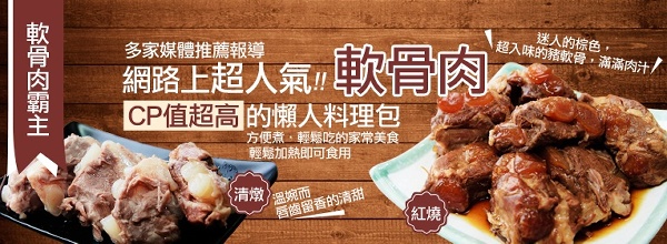 | 推薦原因 : | (1) 軟嫩入味 (2) 軟骨燉到幾乎入口即化、又營養~ 小朋友超愛 (3) 加熱方便.包裝乾淨衛生 |