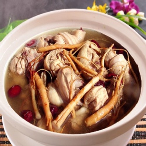 產品特色:御膳人參百合雞湯是由精選人參、百合、天麻、麥門冬、枸杞、紅棗…等十餘種藥材,細火慢燉二十四小時熬製湯頭後加入嚴選放山雞腿肉烹調而成,溫和不燥熱,除產後哺乳期間暫不宜食用外,任何體質,任何季節皆可食用。