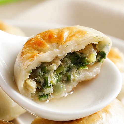 【食用方法】:不需解凍,平底鍋內油熱後放入餡餅,加入少許水,以中火煎約5-6分鐘,至兩面呈金黃色即可食用