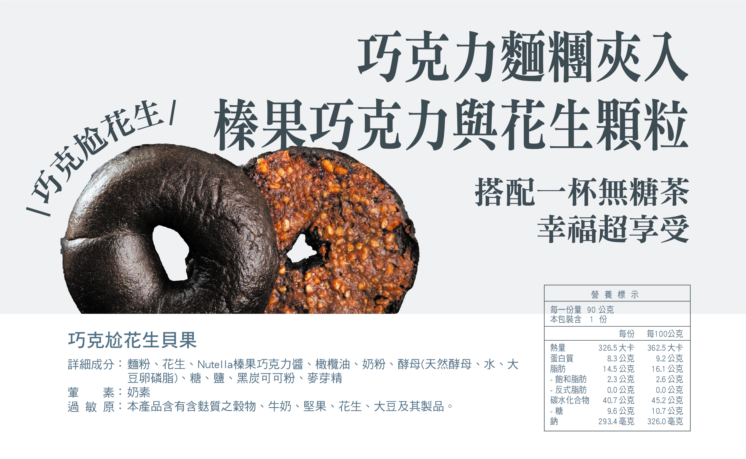 巧克力麵糰夾入Nutella香濃榛果巧克力抹醬加上營養滿分的花生顆粒,碰撞新風味