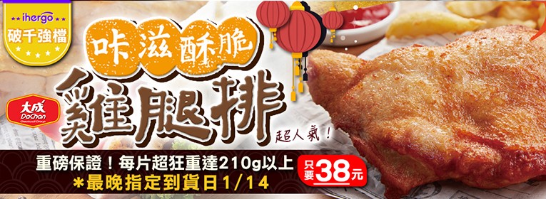 已流團 - 大成咔滋酥脆雞腿排, 重磅保證每片重達210克以上,一片只要38元!酥脆入味,一吃上癮!!! 希望徵60免運, 謝謝! | [大合購] 大成咔滋酥脆雞腿排 ✱ 重磅保證,超狂銅板價!