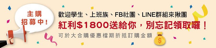 本次限時大合購已截止,若不想再錯過下一波優惠,現在留下您的email,下次優惠給你最新通知喔!
