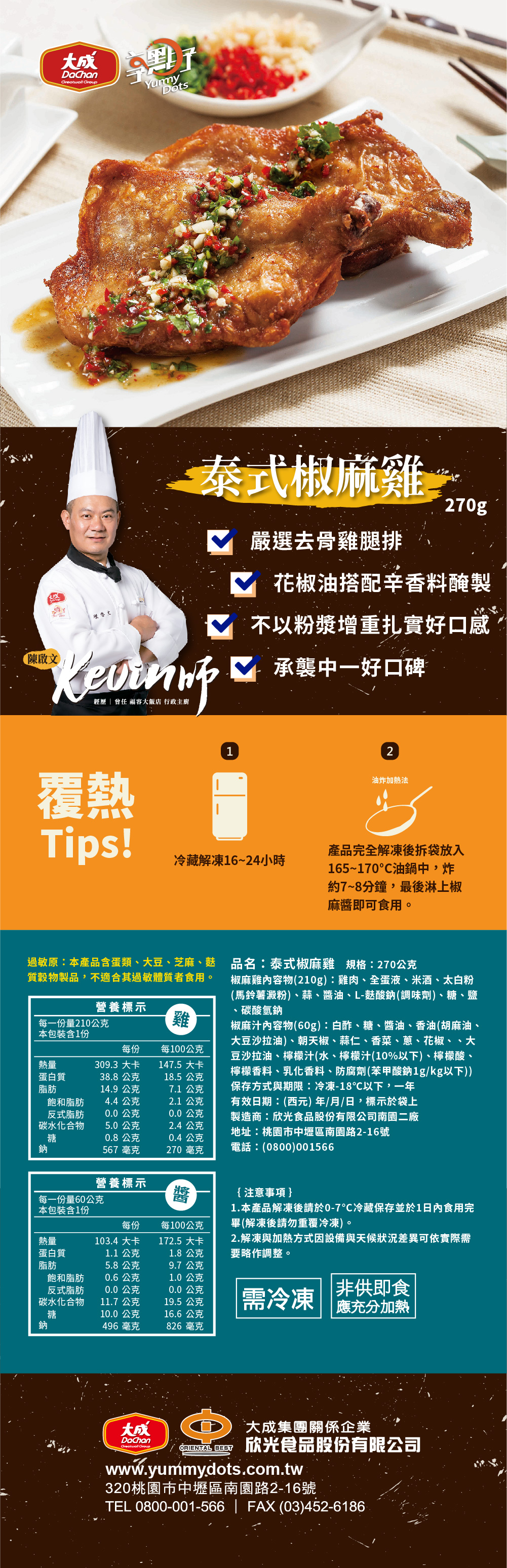單筆訂單份數滿19份,滿額禮送【大成】泰式椒麻雞1份(價值105元)