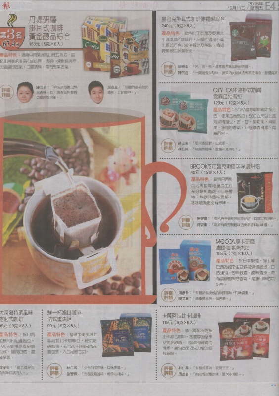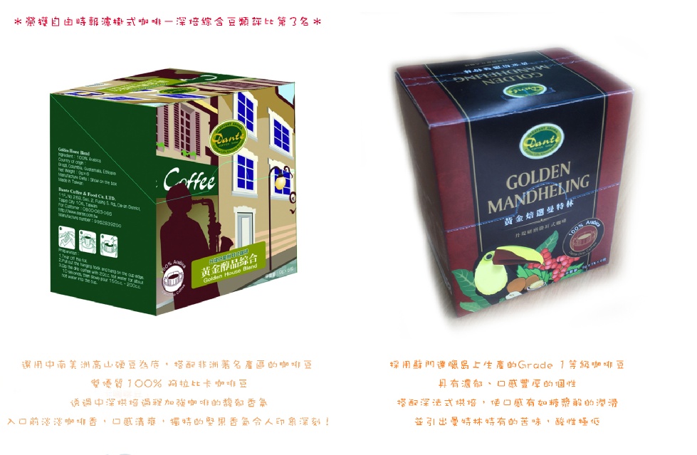 榮獲自由時報濾掛式咖啡-深焙綜合豆類評比第3名