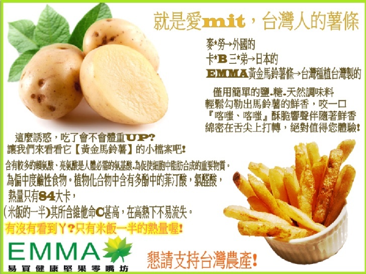 合購介紹 11月12日(一)匯款完成--取貨日:11月21日 (星期三) | [大合購] EMMA易買健康※MIT台灣的薯條先生