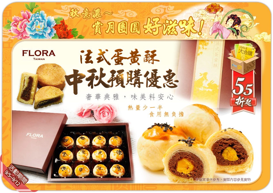 12入蛋黃酥+4水果茶包只要$220,徵2000免運! | [大合購] Flora●中秋好禮蛋黃酥 陪您度中秋佳節