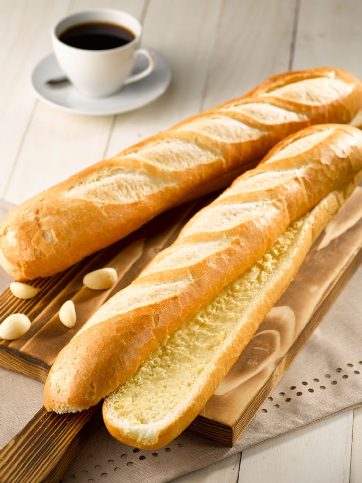 產品特色:福利的大蒜法國麵包,顛覆一般人對法國麵包硬梆梆的印象。