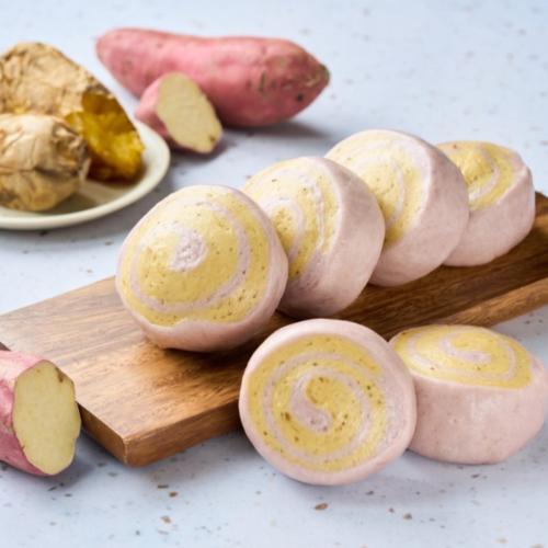 地瓜加入麵團中,蒸好後饅頭色澤天然,