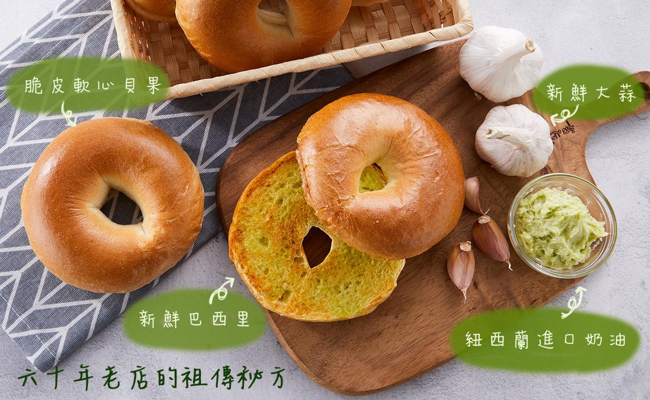 使用台灣新鮮大蒜,自己研磨成泥+紐西蘭進口頂級奶油 + 新鮮巴西里,製作成完美香蒜醬!不同於一般市售的蒜醬,烤焙過後,香氣濃郁卻不膩口,全天然的食材,加上酥脆的貝果口感,讓孩子也可以安心愛上,是秋冬早餐的最佳首選!