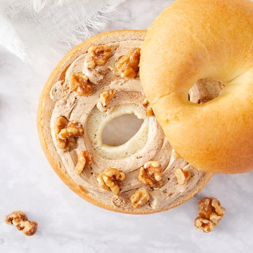 長的像貝果卻不是貝果,柔軟濕潤的麵包體,奶香氣十足,退冰即食,搭配歐洲頂級Corman 奶油混合咖啡粉與可可醬,極上咖啡風味的奶油抹醬,搭配苦甜的蜜核桃碎粒,口感、層次感豐富,是貝也納的專屬大人味!