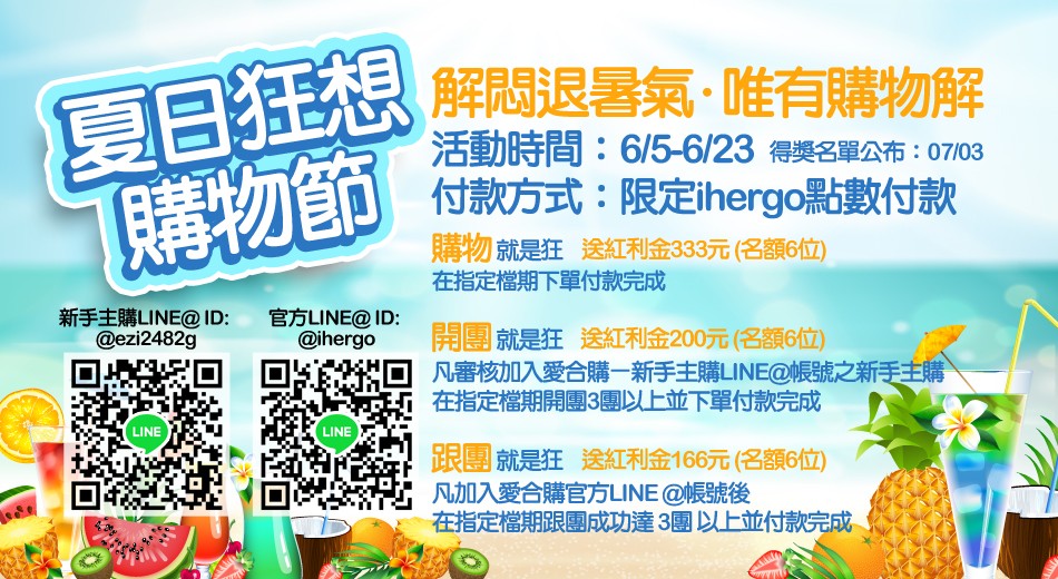 * 106年7月6日為最後到貨日,無法展延 請見諒。主購確認到貨日可配合再進行下單。