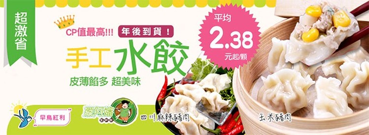 3/6(二)到貨 蔥阿嬸手工水餃★網路團購第一,狂銷近九千包!手工水餃一個只要2.38元  | [大合購] 蔥阿嬸手工水餃 ❖ 網路團購第一,CP值最高!