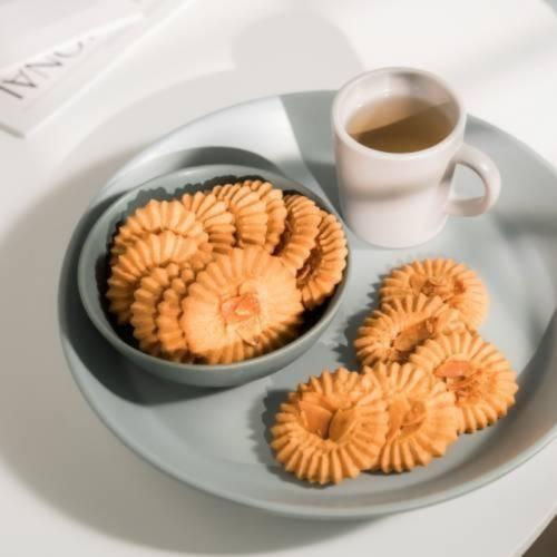 奶香餅乾搭配手炒杏仁焦糖餡,甜而不膩、外酥裡脆,彷彿金黃色澤的美麗花環。