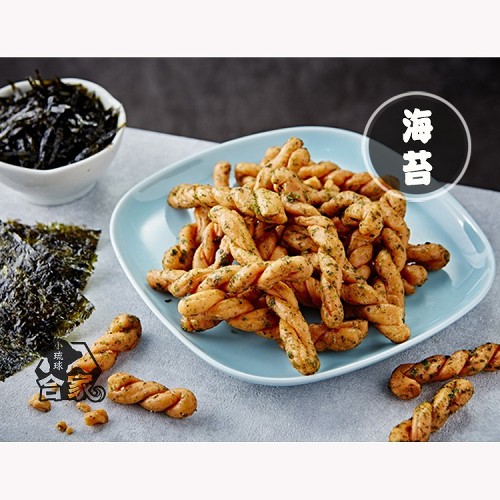 嫩綠的海苔佈滿脆甜的麻花捲,略帶海味的鹹香海苔與甜蜜的麻花捲相輔相成,激盪出絕妙的鹹甜風味。