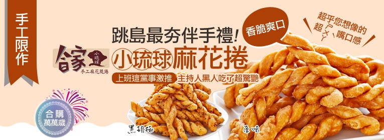 單筆訂單份數滿20包,主購禮送 手工麻花脆捲1包(口味任選,不包含煉乳口味)