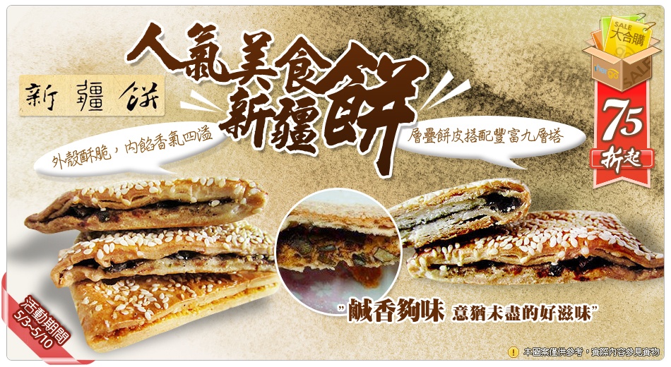 ~上班族最愛的零嘴~層疊餅皮,搭配正宗三星蔥皮酥脆、餡夠味,越吃越香的新疆餅嘴饞時就吃這味,絕對對味!◎為響應環保,本檔大合購不主動提供塑膠袋喔!(若需要則下訂單時再特別跟店家提出!!)每一合購或立即訂購,總訂購份數需滿1500元(不需為倍數),就能享有大合購特惠及免運費;如訂購總份數未滿1500,需自行負擔運費100元。*滿2000元 贈送主購禮新疆餅或蔥脆餅1份【網友推薦】台南吳餅記新疆餅鳳梨酥口味香又酥脆窩~http://tw.myblog.yahoo.com/jw!nX8akbKdAxgFh3pA.Be7oJFH/article?mid=10925台南 新化 道地創始原味 新疆餅(原味、 奶酥、九層塔)http://tw.myblog.yahoo.com/www0377/article?mid=11590香酥爽口ㄉ特色點心新疆餅http://tw.myblog.yahoo.com/jw!f2oJiyqXEhZxNpkUwW1b_6c-/article?mid=3737(美食試吃)台南新疆餅http://www.wretch.cc/blog/magic6911/23211422*本檔大合購最後到貨日為:5/31(為方便店長接單生產出貨,先完款先排單先出貨,務必完款後安排再約定到貨喔!)