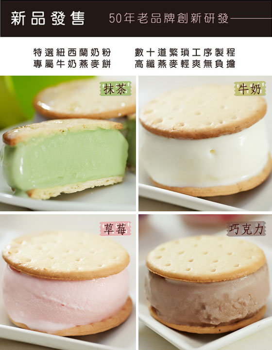 50年老冰店創新推出馬卡隆冰淇淋,香酥可口的牛奶燕麥、夾裹住香濃的冰淇淋內餡,台法混血的三明治馬卡隆冰餅,為今年夏天帶來不同的涼爽感受!