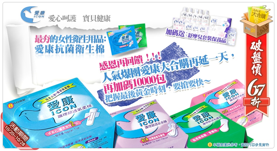 ☆全台最大的團購網站冠軍團購商品☆終於登上大合購了,讓您久等了!這次慶祝愛康抗菌衛生棉五周年慶第一檔~~破盤到底每包35元,請您把握這一星期的揪團時限,趕快搶購限量30000包的衛生棉,下次再也不容易買到這個優惠價了!甘恩