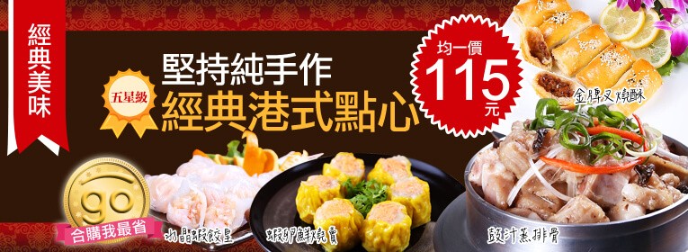 單筆訂單份數滿30包,主購禮送港點1包(價值115元)(可倍數累計)(口味蝦仁鮮燒賣、蝦卵鮮燒賣、水晶蝦餃皇、蠔油炆鳳爪任選一包)