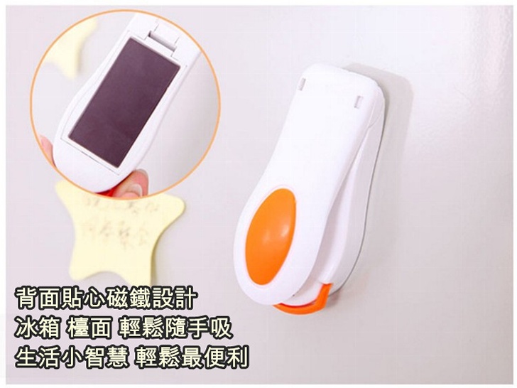 輕巧封口機,迷你機型,方便攜帶、收納,背面再貼心設計磁鐵,可吸於冰箱上,方便拿取使用。