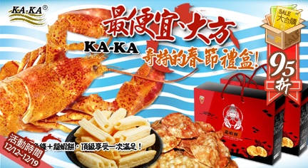 【雪魚條】同期2010年, KA-KA創作出”雪魚條”,以”魚鬆的雪花餅乾” 為宗旨,最後決定用 ”薯條”形狀,來呈現 ”一條魚”的感覺。餅皮 ”中空”設計,讓口感更酥鬆,一樣用廣受大家喜愛的獨門配方製成,就是要再度讓你一吃上癮。