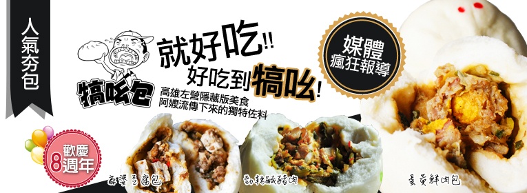 犒吆包的由來是原自於店長小時候生長於農村,父母忙於農作,兄弟都由阿嬤照顧,小孩子下午放學回家“哭著說肚子很餓”,阿嬤就會拿出家裏自做的包子。“哭著說肚子很餓”台語就是“犒吆”,因此犒吆包的招牌“筍香肉包”“鮮肉包” “蛋黃鮮肉包”都有古早的味道,加上精心研發的麵皮,風味絕佳。