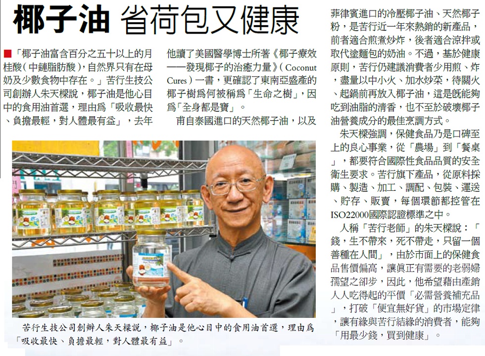 來自天然椰子果肉、以冷壓方式搾取,無任何添加物,是追求健康不可或缺的好油脂