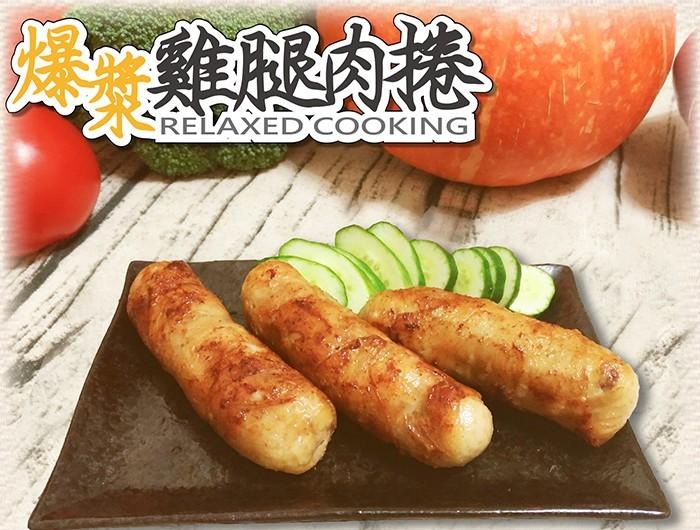 爆漿雞肉捲的外皮是使用雞皮包裹,在煎烤時不必再加入調味及油脂
