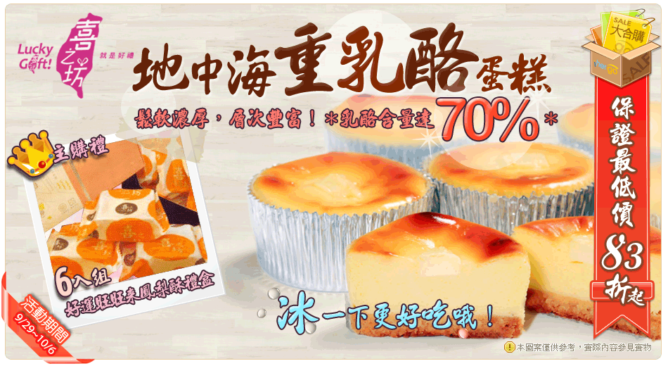 *單筆訂購總金額滿3000元以上  贈送主購禮 好運旺旺來鳳梨酥禮盒(6入組) 乙份(巿價168元)