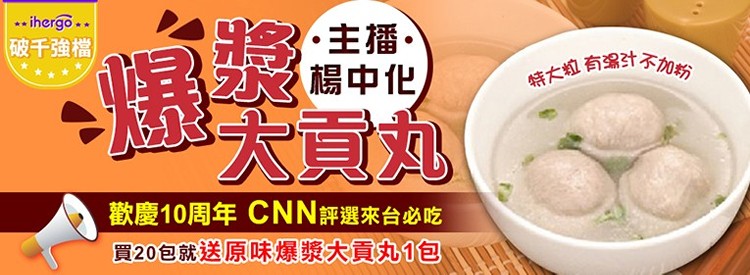 5/29(三)到貨 楊中化爆漿大貢丸主購禮大放送!特大粒、有湯汁、不加粉,7天賣出15萬顆!更是CNN評選-來台必吃的台灣美食!  | [大合購] 主播楊中化爆漿大貢丸 ❖ 台灣團購第1名的貢丸